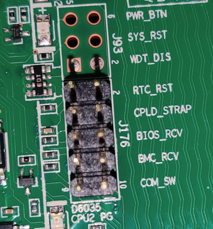 Si l’IP actuelle de l’IBMC n’est pas connu, et que le mot de passe Admin n’est pas à votre disposition, il est possible de restaurer les paramètres par défaut à l’aide d’un jumper¹, en connectant entre elles les deux pins « BMC_RCV » de la carte mère. L’adresse IP par défaut sera alors paramétrée (192.168.2.100) et le mot de passe administrateur sera lui aussi remis par défaut.