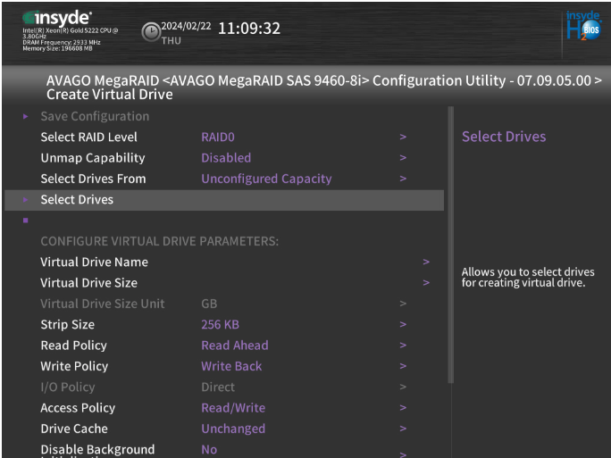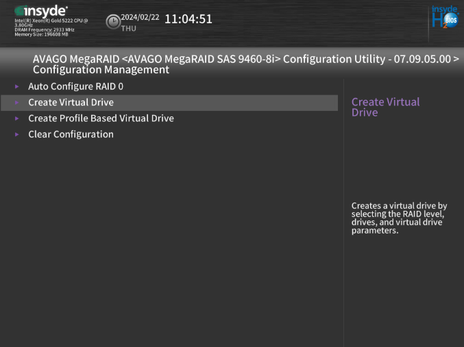 Dans le menu, nous nous rendons dans « configure » Puis « Create Virtual Drive »