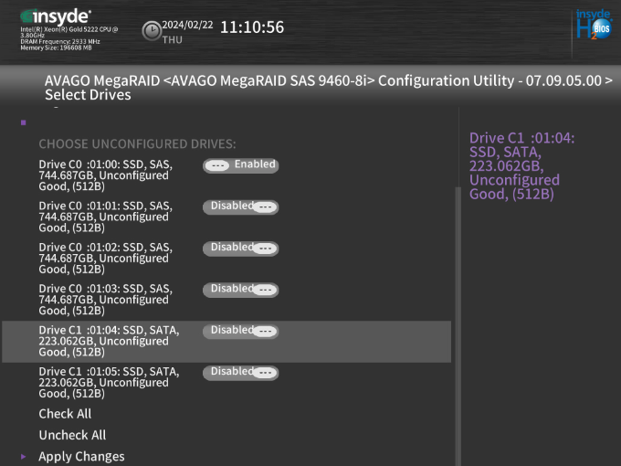 Dans « Select Drives » nous allons pouvoir voir les disques présents dans le serveur.
