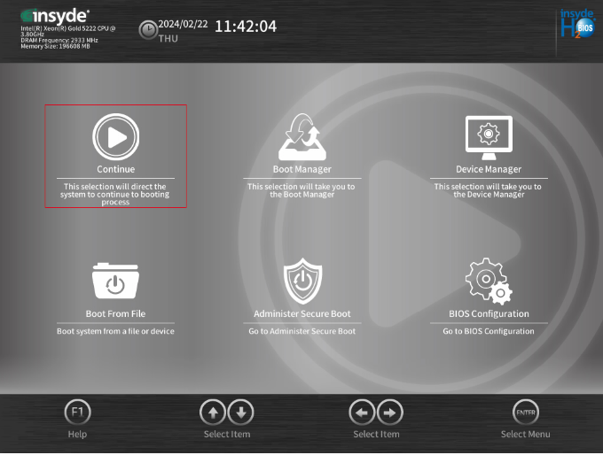 Après avoir appuyé sur « Suppr » lors du démarrage, et entré le mot de passe administrateur, nous arrivons sur l’utilitaire de configuration.