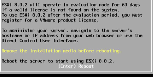Le système n’a plus besoin du DVD virtuel, il faut le déconnecter puis appuyer sur Entrer pour redémarrer