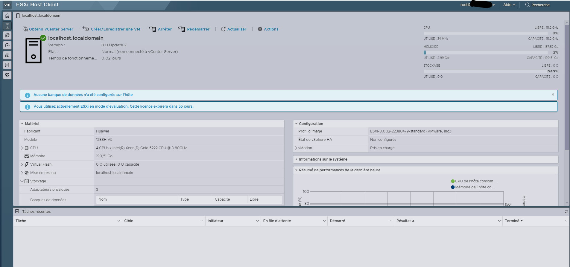 Un serveur Huawei commandé pour un projet non abouti n’était plus utilisé. Il a alors été décider de l’utiliser comme Hyperviseur afin de pouvoir mener des tests.