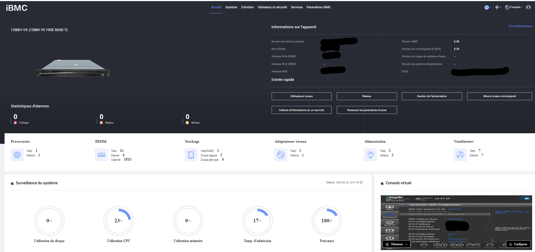 Ip en mode statique, l’adresse IP de l’IBMC, le masque de sous réseau, et la passerelle. Nous allons pouvoir prendre la main à distance.