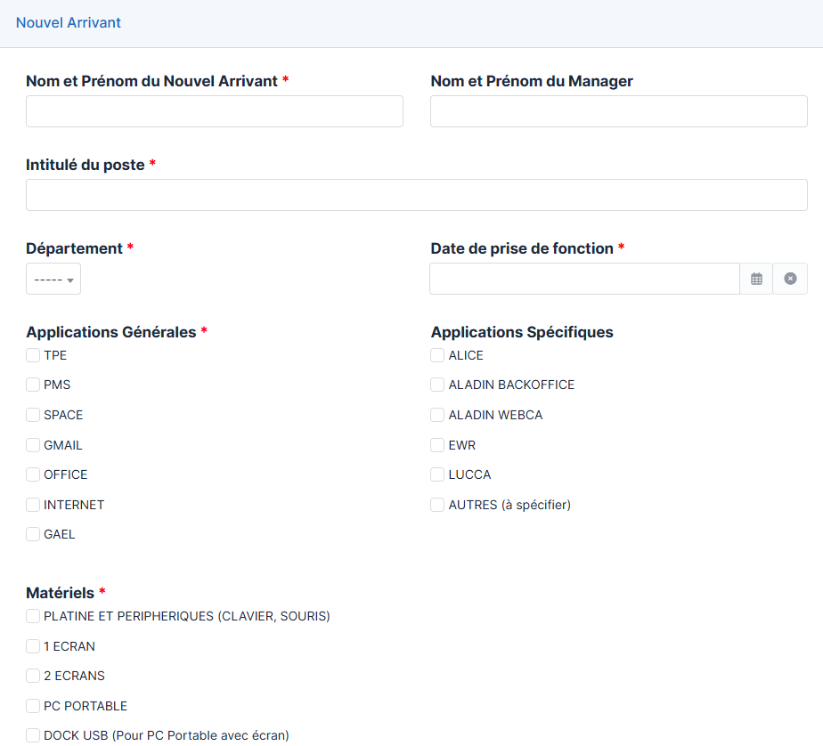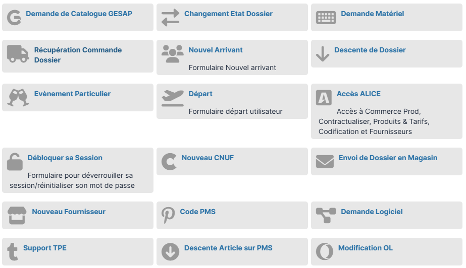 Les utilisateurs disposent de formulaires pour les aider à créer les tickets. Ce sont des templates qui demandent aux utilisateurs de rentrer les informations nécessaires à la résolution de leur besoin.